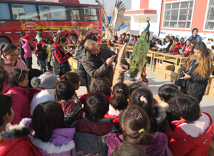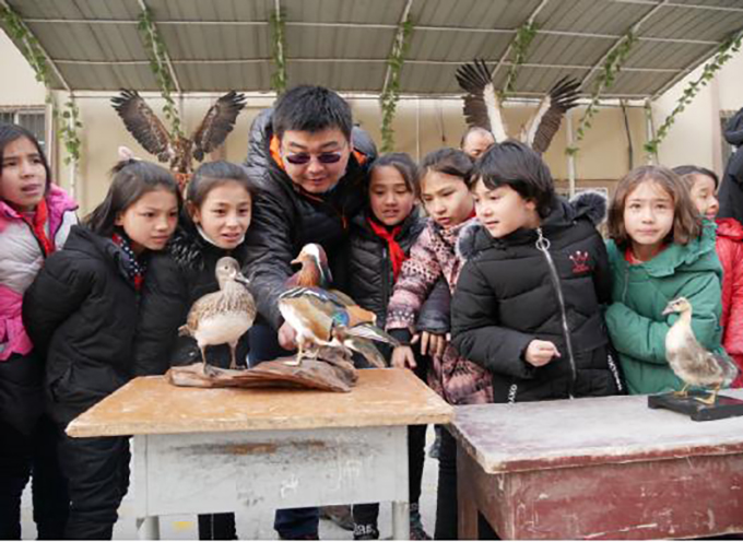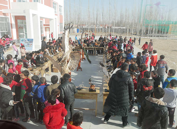 此次活動由塔里木大學歷史與哲學學院和生命科學學院共同主辦,12月20日-22日先后走進和田縣塔瓦庫勒鄉巴克墩村學校、和田縣塔瓦庫勒鄉中心小學、和田市第五小學,參展師生共5000余人。展覽以扁吻魚(新疆大頭魚)、塔里木兔、水獺、禿鷲、秋沙鴨等68件動物標本為主要展品,輔以圖片展板、宣傳手冊和問卷調查等多種形式,向和田地區青少年詳盡介紹了環塔里木地區的生物多樣性情況,及生態保護迫切性和重要性。展出結束后,主辦方分別向三所學校捐贈了部分動物標本用于學校課堂教學。