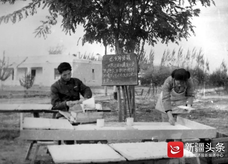 學校在建校之初,只有19名教師,500多名學生,自然條件極端惡劣,物質條件極度匱乏。師生們發(fā)揚“南泥灣”精神和“抗大”作風,天當房,地當床,田野當課堂;手拿筆,肩抗鋤,大地寫文章;他們憑著一雙手和扁擔、筐子、坎土鏝,在萬古荒原上開荒造田,治沙治堿,伐木脫坯,邊學習邊勞動建校。