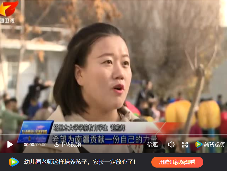 一句“重任在肩”凝聚著的是幾代塔大人的心血和期望。閆鳴鳴在塔里木大學小胡楊幼兒園任教27年,1991年幼師畢業后,她就選擇來到小胡楊幼兒園工作。閆鳴鳴說,他們不僅要把孩子們照顧好,更要把他們培育成建設邊疆服務邊疆的建設者和接班人。