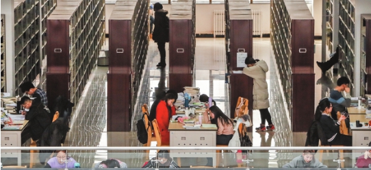 塔里木大學師生在今年新落成的圖書館里學習。