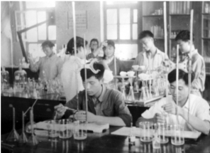 1965年塔大學生在上化學實驗課(資料圖)。