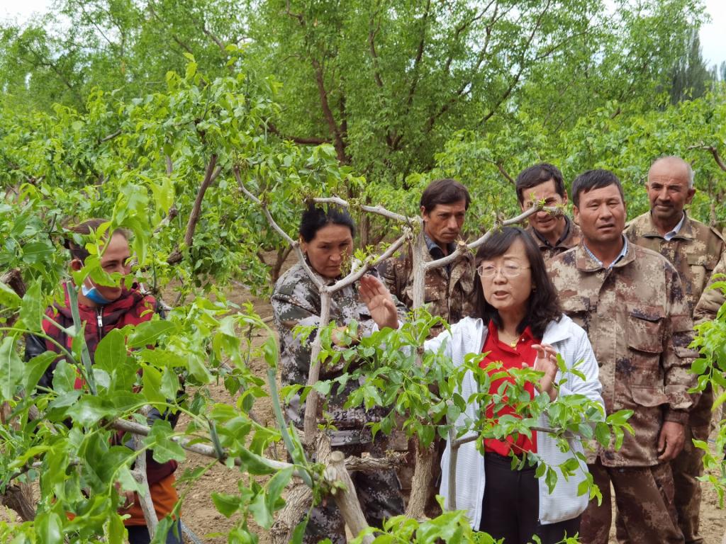 每年的果樹管理關鍵期,她都會利用周末、節假日和寒暑假,帶領團隊奔赴南疆貧困團場、鄉鎮,在田間地頭給農民培訓果樹種植技術,為果農開“農技處方”,并不斷創新科技服務新模式。
